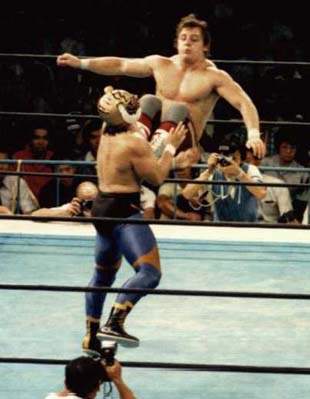 RIP Tommy Billington, aka the Dynamite Kid, whose high-flying moves as part of the British Bulldogs tag-team thrilled pro-wrestling fans. He began at 13 and was touring at 16. The rigors wore his body out. He was in ill-health for more than a decade. His wife started a gofundme campaign to help pay his medical bills. He was only 60 and died on his birthday. The outcomes of matches are pre-determined, but injuries often occur. It's not easy work. Thank you, sir. Here he is delivering a drop-kick to an opponent: